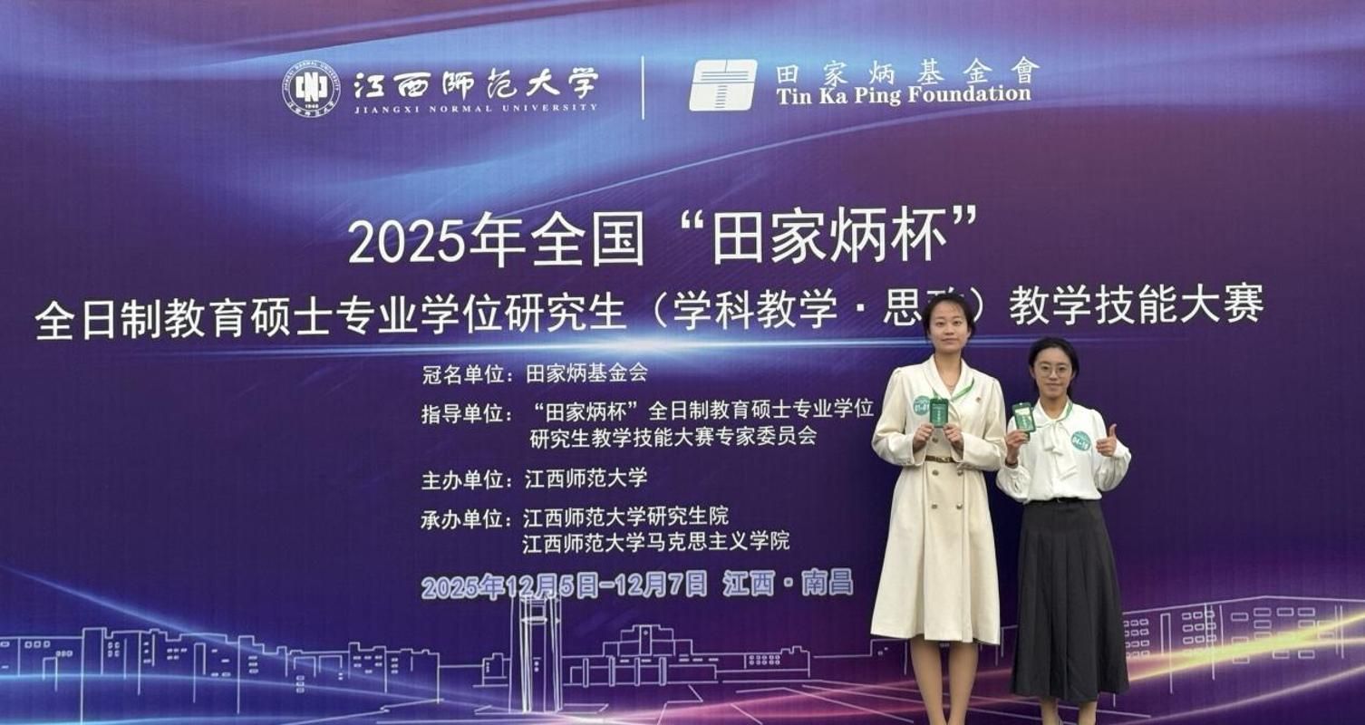 12月5日至7日,2025年全国“田家炳杯”全日制教育硕士专业学位研究生(学科教学·思政)教学技能大赛在江西师范大学举行。我院吕松宸、李钰苇2位同学进入决赛,最终,吕松宸同学获全国三等奖,李钰苇同学获优秀教学设计奖。